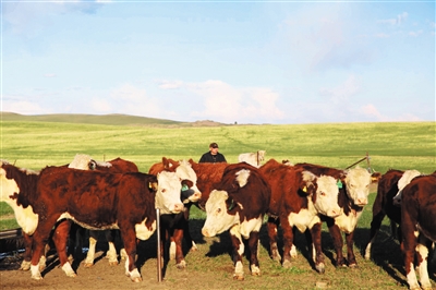 今夏,内蒙古自治区锡林郭勒盟东乌珠穆沁旗呼热图淖尔苏木阿拉坦额莫勒嘎查牧民小平家的牧场迎来了新客——79头海福特牛犊。