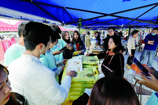 兴安盟大米产品摊位前围满顾客