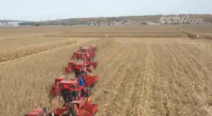 十月中旬开始,内蒙古通辽市科尔沁区黄家村的村民们就开始用大型机械收割玉米。据了解,通辽市今年的粮食作物种植总面积超1800万亩,其中,玉米种植面积1577万亩。中国农科院等专家组成的农技推广团队通过在浅埋滴灌水肥一体化条件下,开展耐密玉米品种鉴选、绿色防控技术集成推广、机械粒收技术研究示范,为玉米产量稳步提升提供了技术支持。