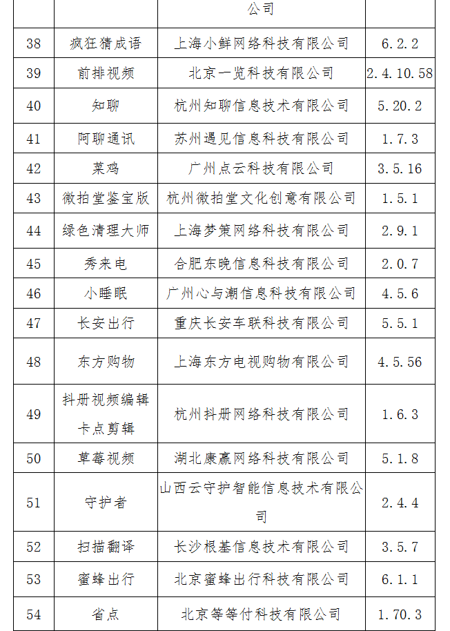 2020年10月26日,工业和信息化部向社会通报了131家存在侵害用户权益行为App企业的名单。截至目前,经第三方检测机构核查复检,尚有60款App未按照工业和信息化部要求完成整改(名单见附件)。依据《网络安全法》和《移动智能终端应用软件预置和分发管理暂行规定》(工信部信管〔2016〕407号)等法律和规范性文件要求,工业和信息化部组织对上述App进行下架。