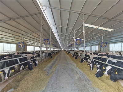 “我们于今年3月启动了牧场二期续建工程,近期工程建设已基本接近尾声,完工量和奶牛进场数量均达到90%左右。牧场一、二期项目总投资2.4亿元,目前总存栏荷斯坦奶牛5700头,日产鲜奶90吨。预计明年6月份前再进场约1000头奶牛,实现满产。满产后,牧场日可产鲜奶140吨,是星连星牧业单体最大的牧场。”内蒙古星连星牧升牧业有限公司负责人李鑫介绍说。
