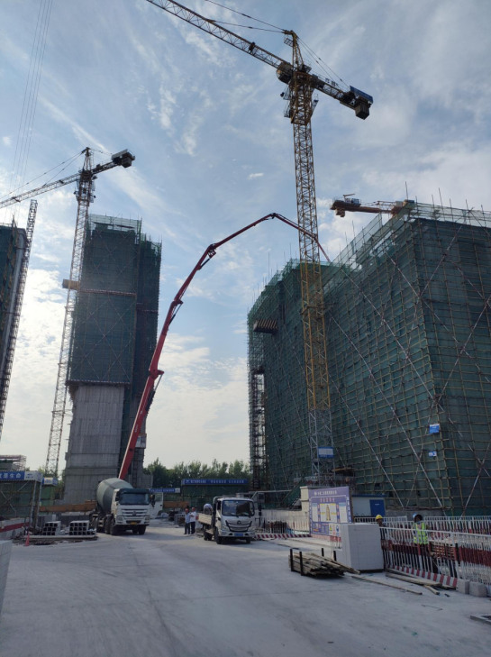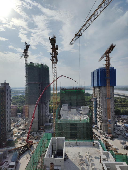 自2021年4月3日开工以来,施工中克服场地狭小、任务繁重等诸多困难,按照计划及时的完成了首开区节点目标。土方开挖阶段由于正值雨季,对开挖进展影响巨大,项目部迎难而上、精心部署,天气好转并具备开挖条件后,施工机械24小时作业,顺利完成了土方开挖任务。今年按照工期计划,通过倒排工期、组织大干、攻坚克难,在6月完成了7栋楼的封顶,8月份已完成13栋楼的封顶,9月9日随着10#楼主体结构的最后一车的混凝土浇筑完成,16栋楼栋主体结构全部顺利封顶完成,这意味着振业御湖已经顺利完成最重要的工程节点目标。