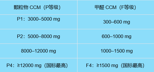 CCM(累积净化量)颗粒物CCM50000mg+远超国标最高标准P4的12000mg, 甲醛CCM:12000mg以上,超国标最高F4 8倍以上。