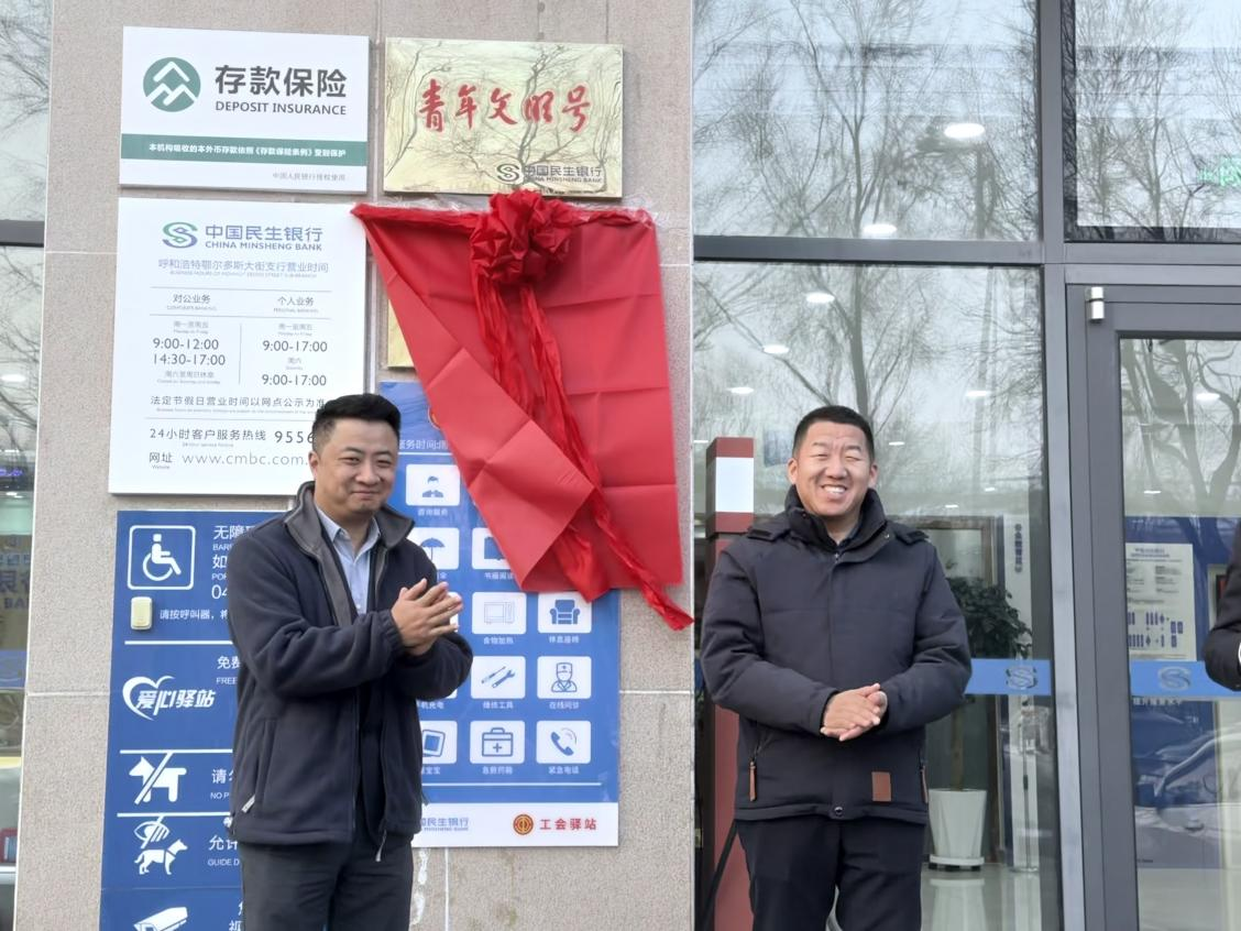 12月16日,中国民生银行呼和浩特分行党委委员、工会主席徐进与呼和浩特市赛罕区总工会主席共同为鄂尔多斯大街支行“工会驿站”举行了隆重的揭牌仪式,标志着双方在服务职工、回馈社会方面的深度合作迈出了重要一步。