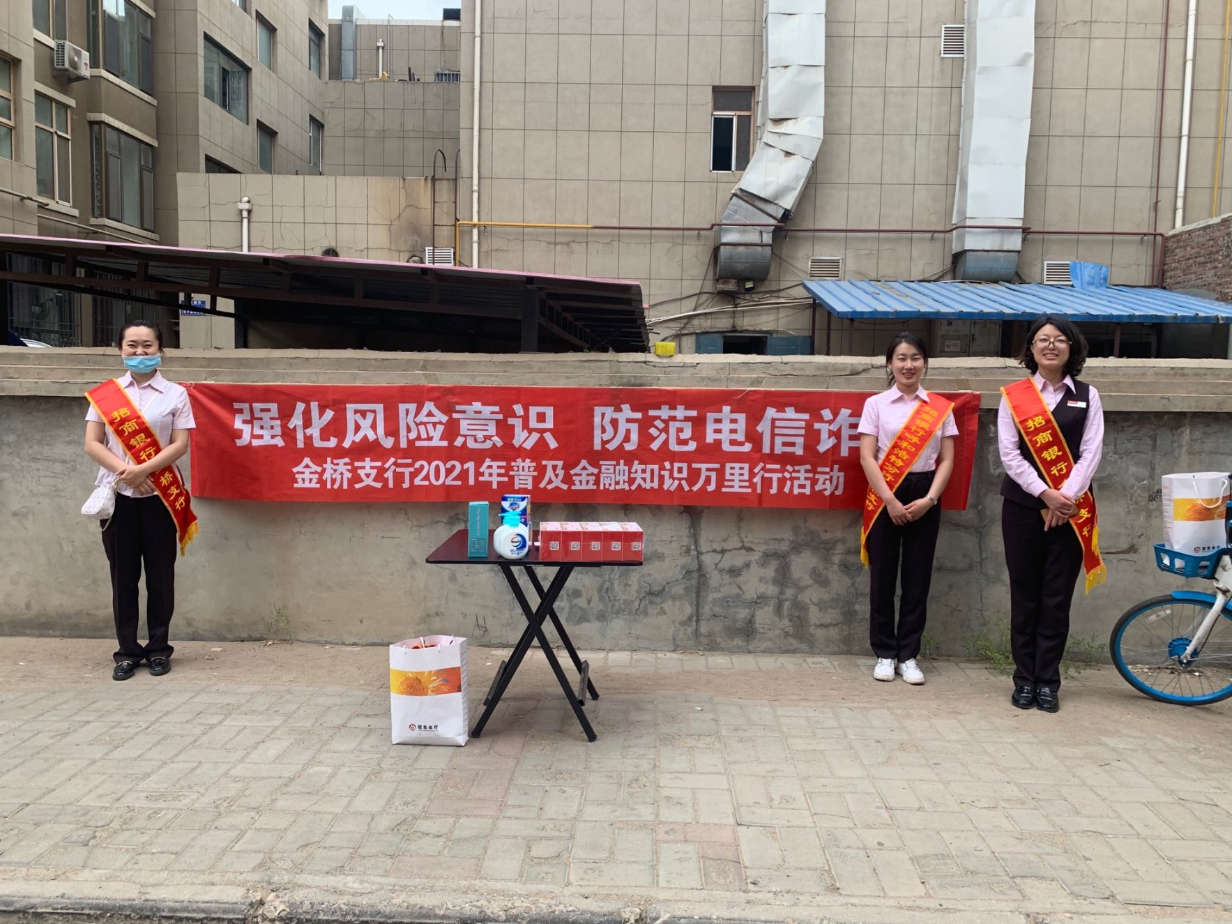 为了让更多群众了解金融知识,履行金融机构宣传的义务,招商银行金桥支行于近日走进网点周边小区,组织开展金融知识普及活动,本次宣传活动的主题是“强化风险意识 防范电信诈骗”。