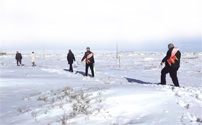 工银“乌兰牧骑”苏尼特右旗支行小分队冒着风雪为乡村群众提供上门服务。