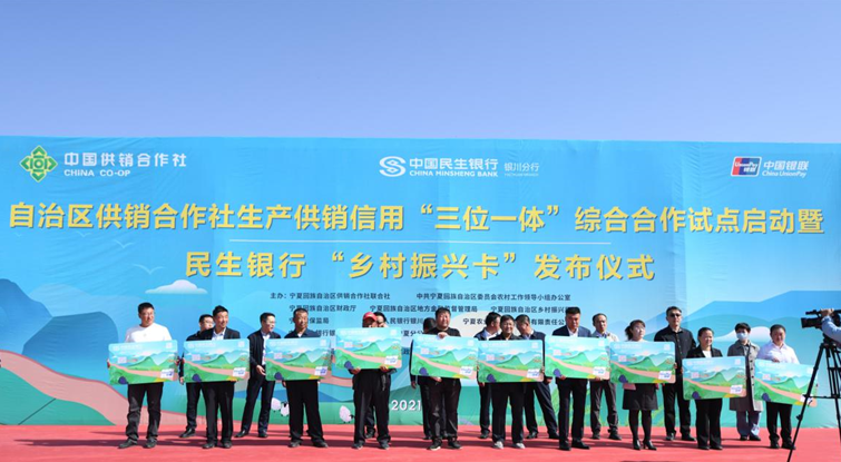 9月29日,在宁夏盐池县花马池镇惠泽村,民生银行银川分行携手自治区供销合作社举办发布仪式,共同宣布发行民生银行“乡村振兴卡”。宁夏自治区党委农办、财政厅、乡村振兴局、金融局、宁夏银保监局、人民银行银川中心支行、盐池县委县政府、中国银联宁夏分公司等单位代表以及10余家媒体共同见证了这一时刻。
