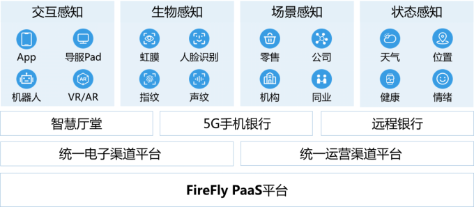 经过多年的持续深耕迭代,民生银行已形成覆盖交互感知、生物感知、场景感知、状态感知的全方位感知技术,并通过统一电子渠道、统一运营渠道、FireFly PaaS三大基础技术平台,集中发力渠道能力建设及整合,着力打造有温度的银行。