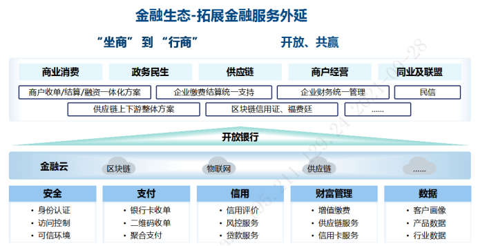 当前,民生银行“生态云”已广泛应用在车主、养老、亲子等零售客群以及白酒、汽车、政务、政采等政企客群。如针对白酒行业,民生银行场景化企业金融服务平台提供“购销通+采购e+票据通知”多产品组合服务,围绕生产端和消费者两个层级纵深延伸,打造了融合订单管理、账户管理、订单支付、票据管理和在线融资等功能的全产业链、线上化金融服务综合解决方案,将金融服务嵌入企业上下游产业链中,提升了企业融资效率及资金流向管控能力。