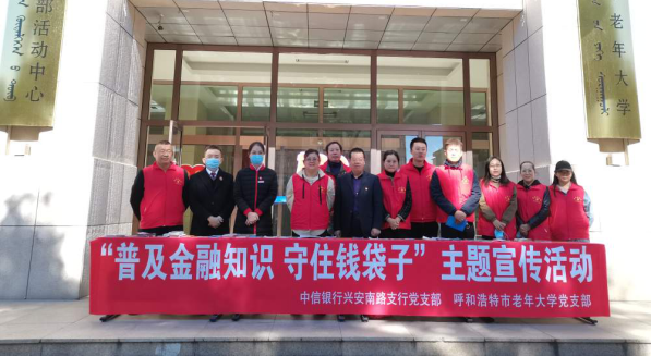 为弘扬尊老、爱老、助老的中华传统美德,践行“我为群众办实事”实践活动,切实保护老年人金融合法权益,10月15日上午,中信银行呼和浩特兴安南路支行走进呼和浩特市老年大学,开展“普及金融知识 守住钱袋子”主题宣传活动。