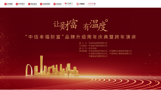 12月30日,“中信幸福财富品牌升级周年庆典暨跨年演讲”活动在线上隆重举行。本次活动由中信集团牵头,中信银行主办,中信优享+承办,协同中信证券、中信建投证券、中信信托、中信保诚人寿和华夏基金5家中信集团金融子公司携手打造,以“让财富 有温度”为主题,深入探讨促进共同富裕大背景下的财富管理。