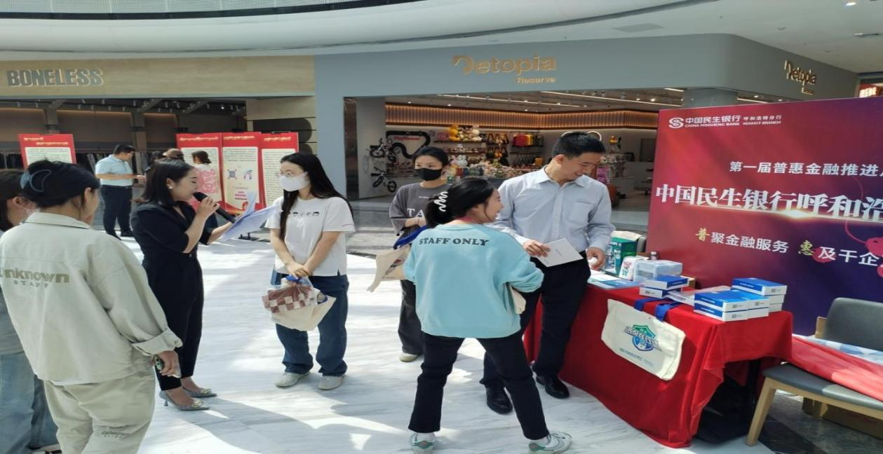 “普惠金融推进月”第一场活动在呼和浩特市振华广场地下街新华MALL中心大厅举行。活动现场设置了图文并茂的宣传展板,生动展示了普惠金融十年来的成就。通过现场发放宣传资料,广泛宣传介绍普惠金融政策和产品,以“扫街”的方式,深入小微企业与个体工商户中,讲解普惠金融政策法规,收集客户的金融服务需求,了解大众金融需求中存在的难点、堵点、痛点,切实提高金融走访对接活动的工作成效。